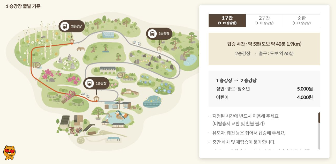 각 구간별 출발 지점과 티켓 구매 방법이 다르니 반드시 티켓 구매 장소를 확인하시기 바랍니다!