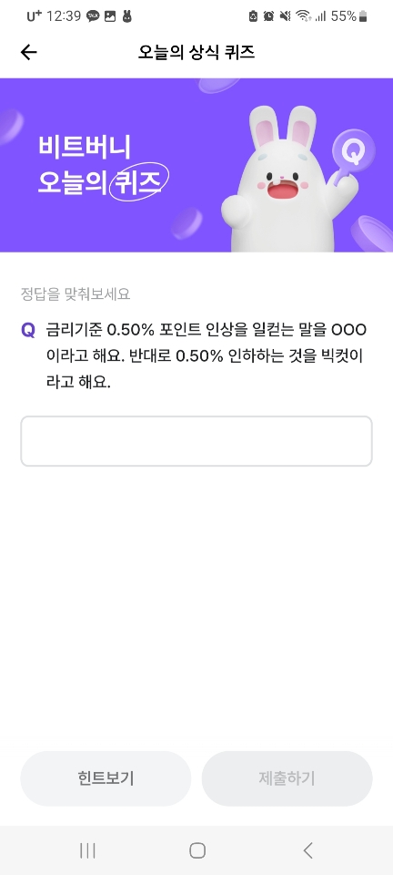 비트머니 9월 8일 단어는 'ㅂㅅㅌ'로 금리 인상 관련 퀴즈입니다.