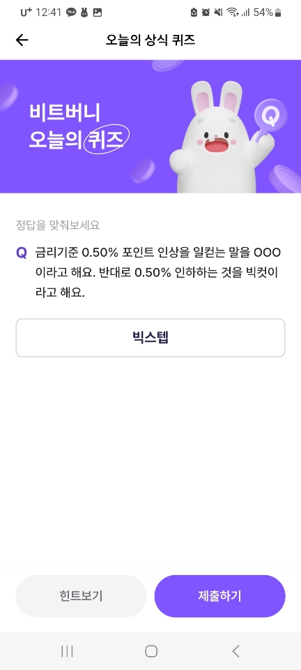 2024년 가을 초입 9월 8일 비트머니 문제 정답은 빅스텝입니다.