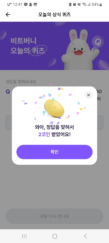퀴즈 풀고 보상으로 받은 2 코인입니다.