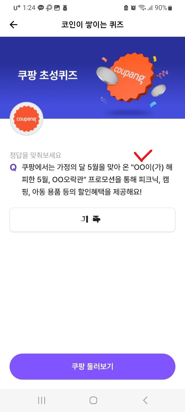 쿠팡 초성퀴즈(5월 13일 오전 10시까지)