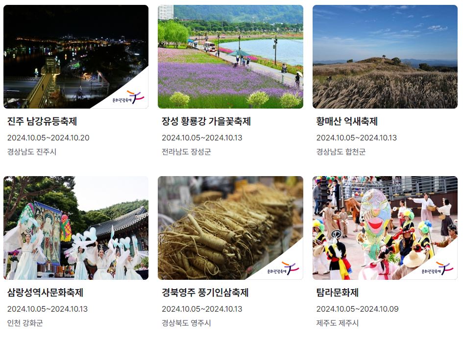 2024년 10월부터 열리는 전국의 다른 축제 정보가 궁금하다면 '전국 축제달력' 으로 알아보시기 바랍니다.