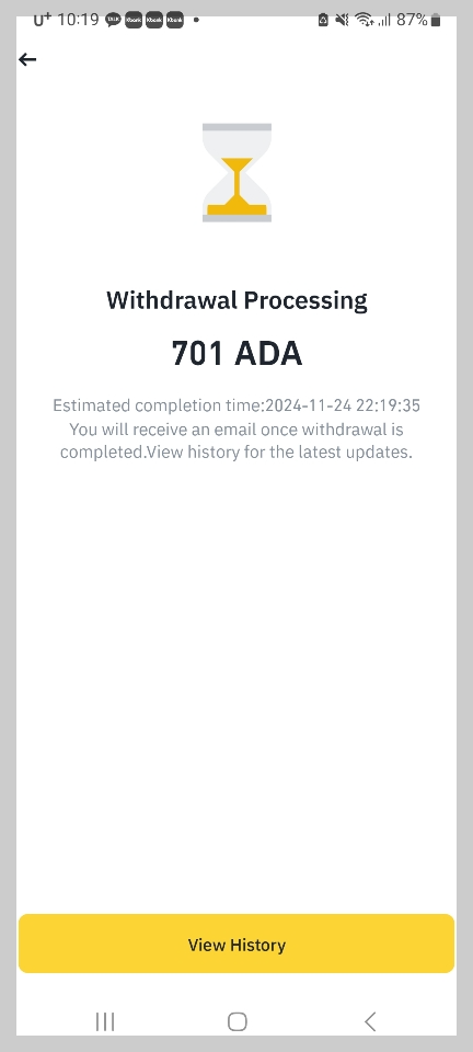 에이다(ADA) 이외에도 리플(XRP), 트론(TRON) 코인은 전송속도가 빨라 1~2분 이내에 전송이 완료됩니다.