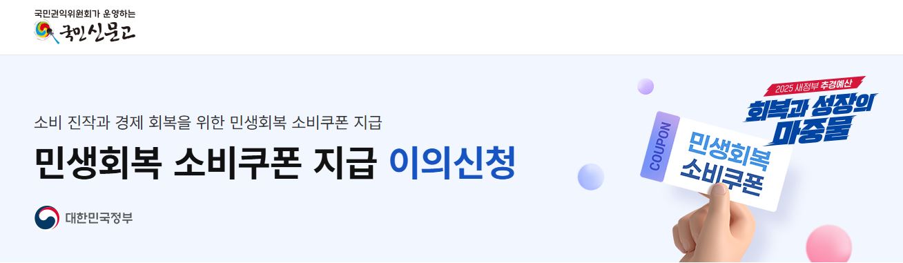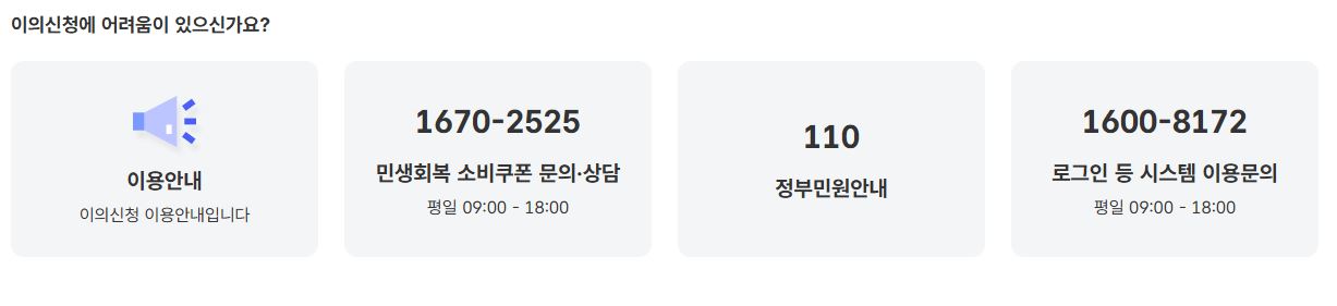 민생회복 소비쿠폰 2차와 관련된 이의신청은 정부 포털 사이트 또는 거주지 지자체에서 접수 가능합니다.