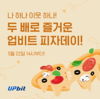우리나라 코인 거래소에서는 피자 데이를 맞이해서 이벤트를 진행했습니다. 가상자산 거래소 업비트에서는 비트코인 피자데이를 맞아 0.001 비트코인으로 4만원대의 피자를 받을 수 있는 이벤트는 2023년 5월 22일에 열었습니다.