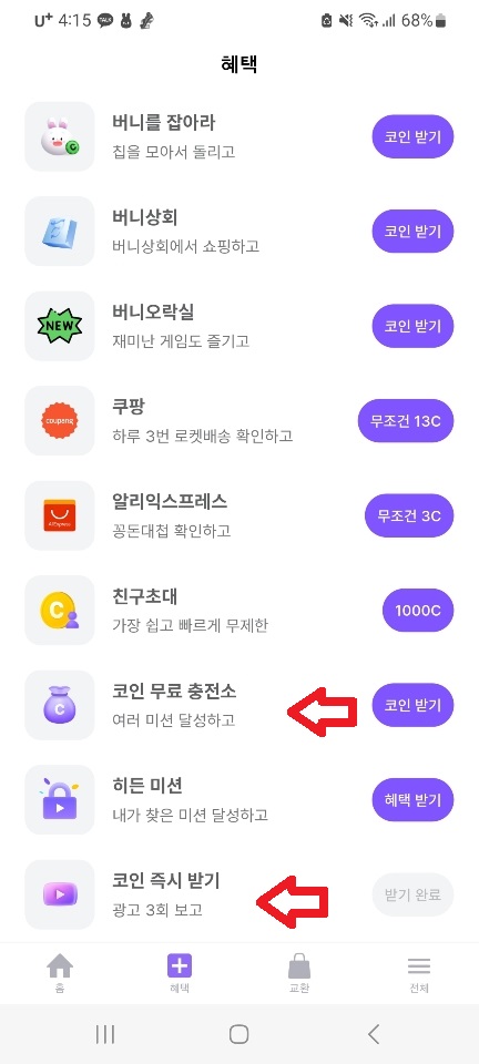 다음으로 가장 난이도가 있는 코인 무료 충전소에서 코인 획득 방법입니다.