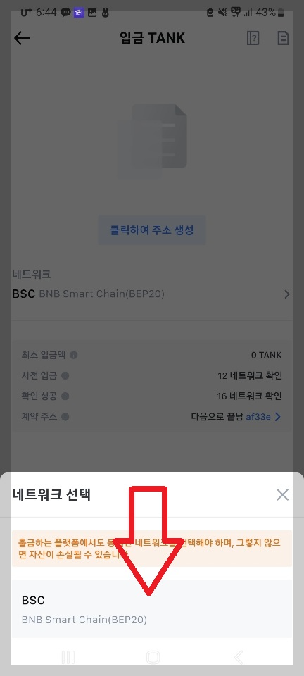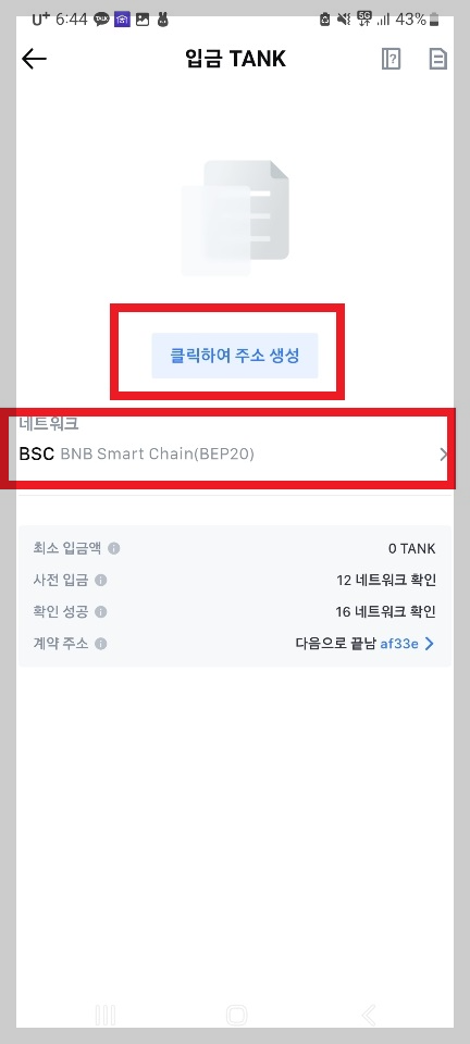 - 네트워크 확인(TANK는 BSC 네트워크)