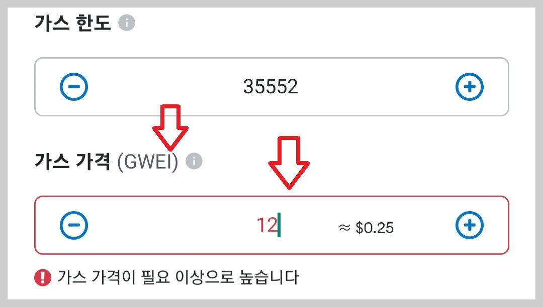 해당 가스 가격보다 조금 낮춰서 전송을 시도했습니다.