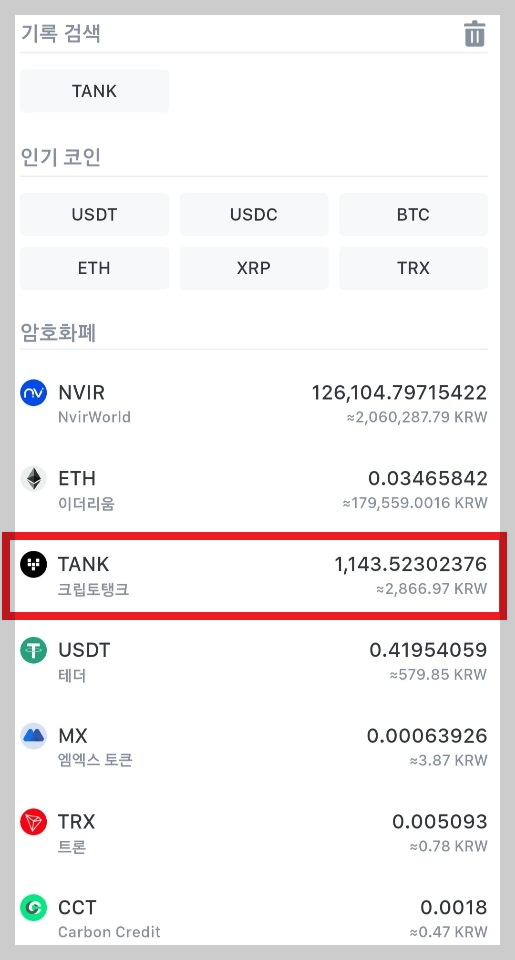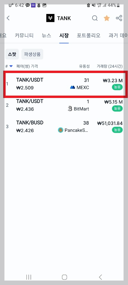 코인마켓캡을 활용해서 tank 코인 정보를 찾아보니 MEXC 거래소에 상장되어 있어 바로 옮기기로 결정했습니다.